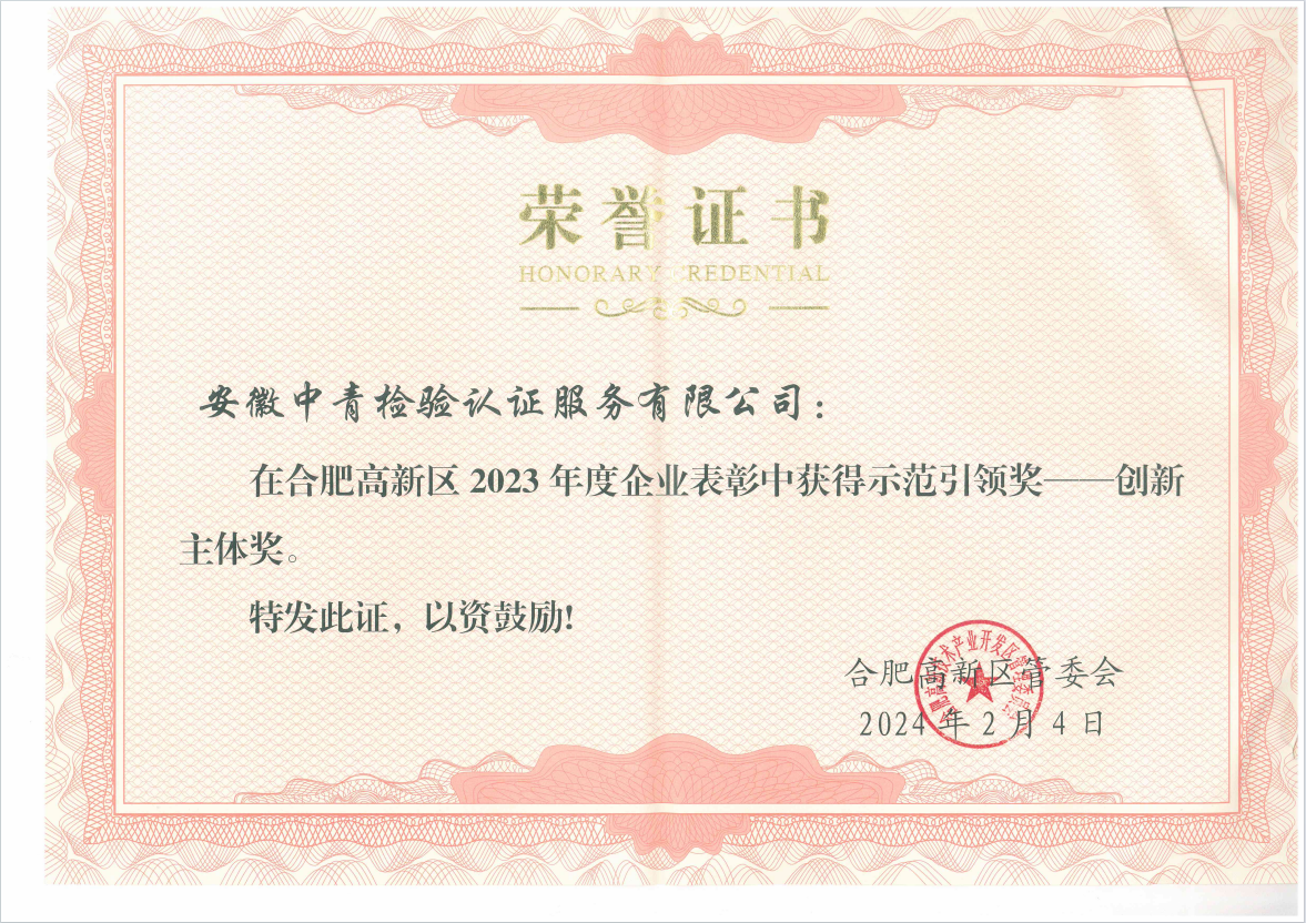 • 祝賀!中青認證 評選為合肥市2024年(2023年度)勞動保